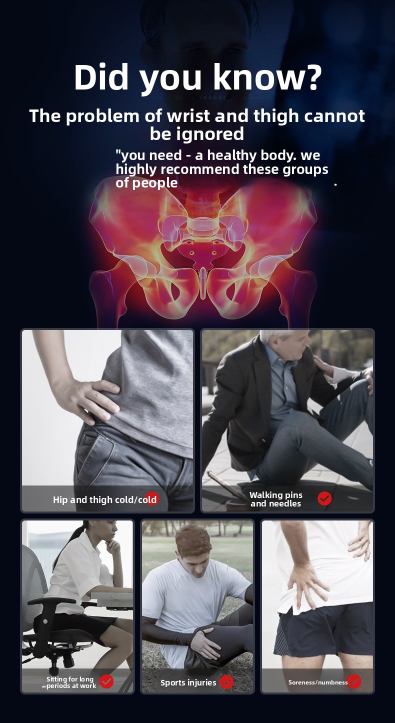 Hot Compress Therapy: Provides targeted heat therapy for hip joint pain relief and postoperative recovery.