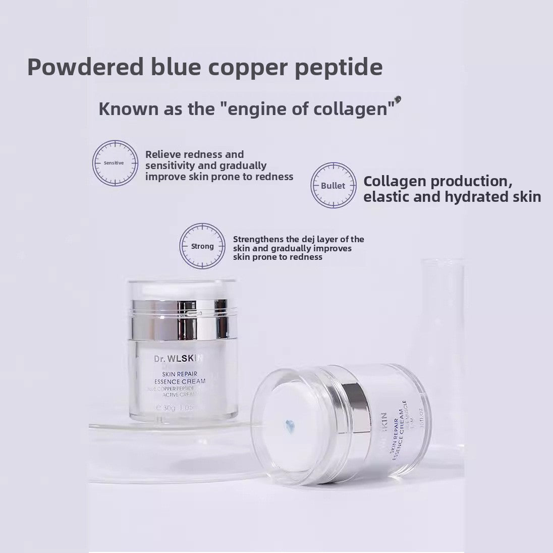Blue Copper Peptide: Contains 1% high-purity (99.9%) blue copper peptide for effective anti-aging and skin rejuvenation.