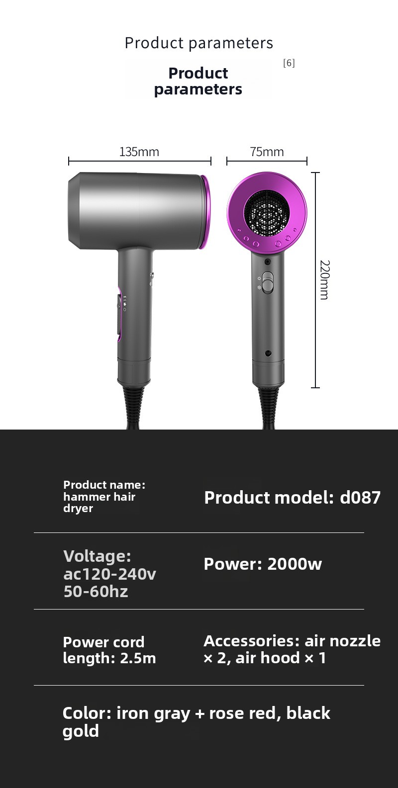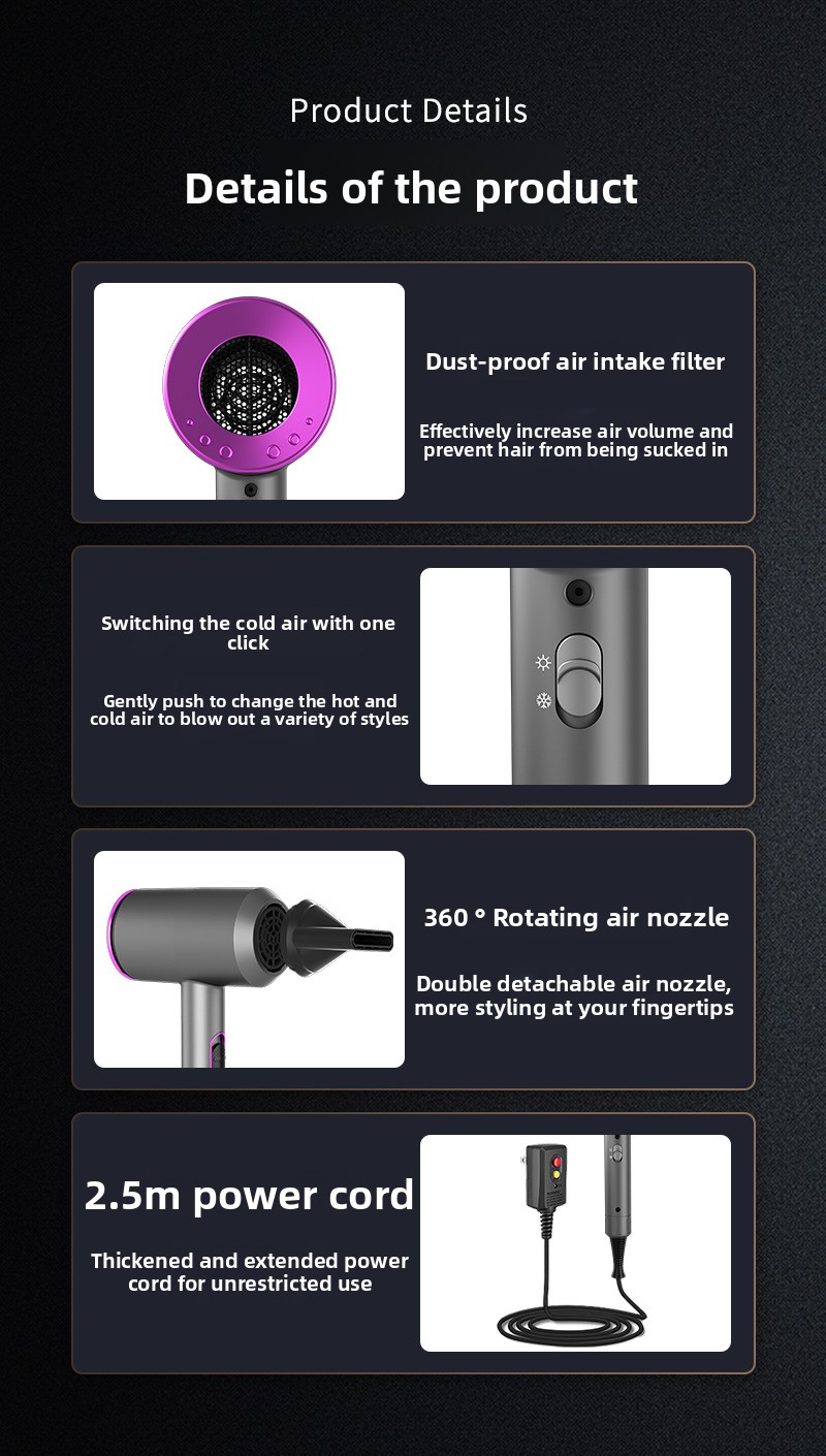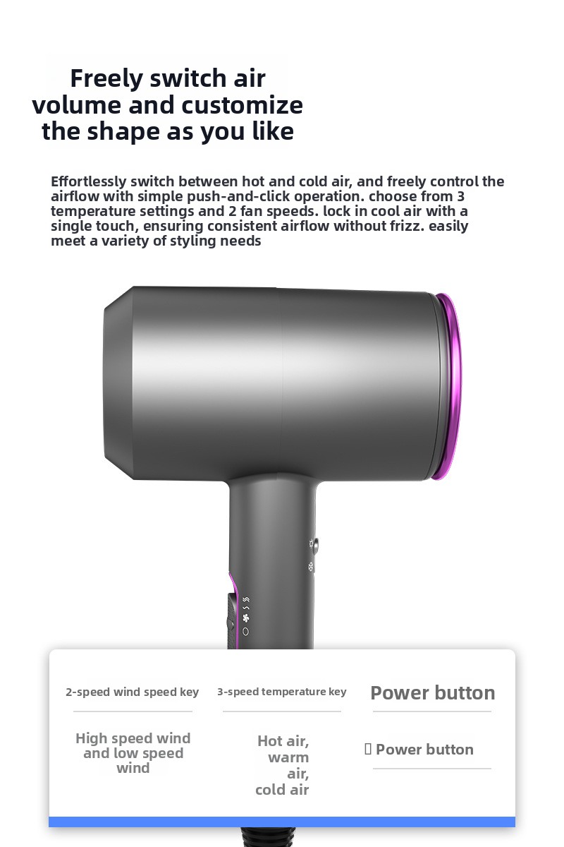 Multiple Speed Settings: 3 wind speed gears with hot and cold air options for versatile styling.