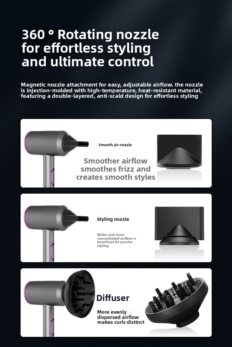 Dual Nozzles: Includes concentrator and diffuser attachments for precise styling.