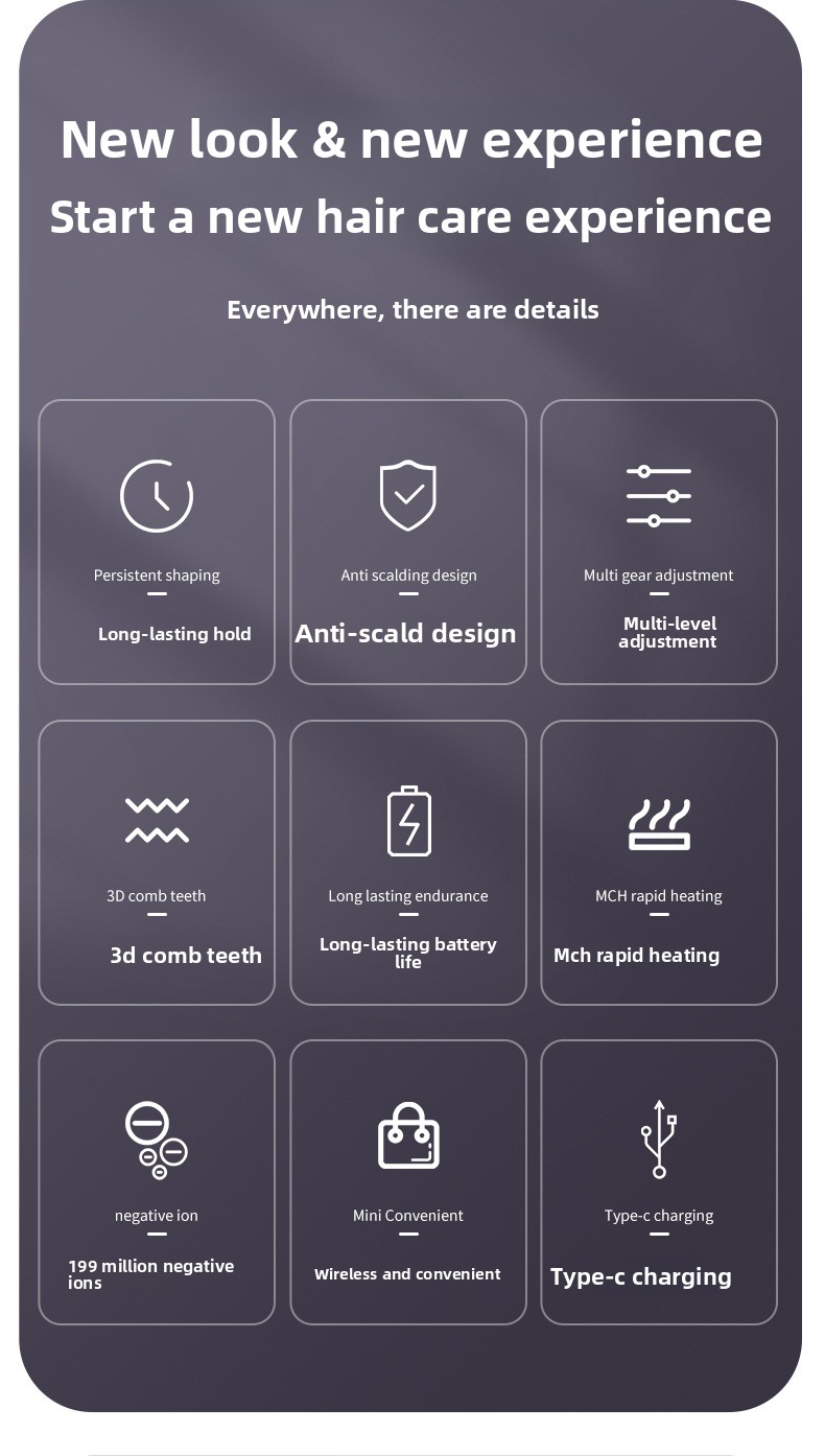 Ceramic Heating: Even heat distribution with gentle styling at 160-200°C