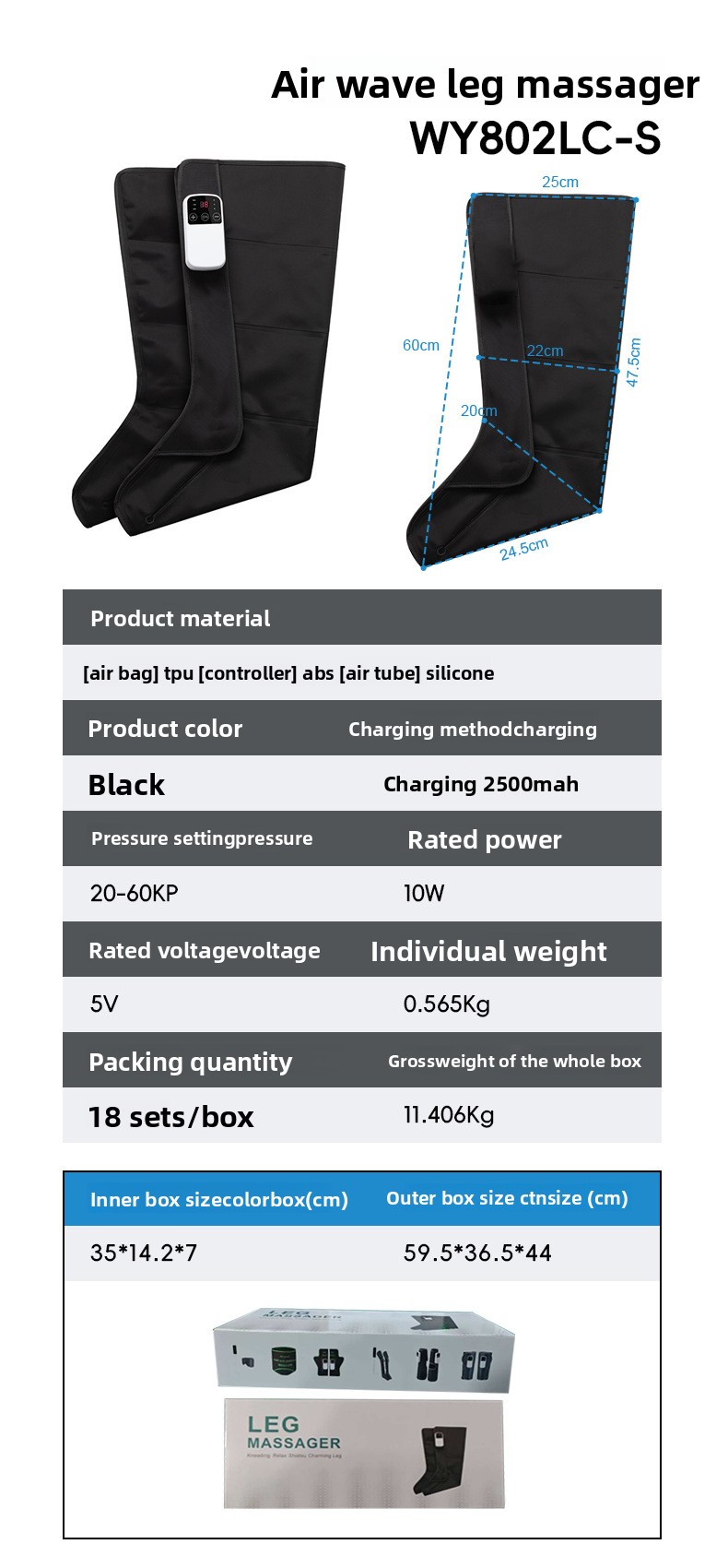 - Massage Principle: Air pressure, airbag, kneading