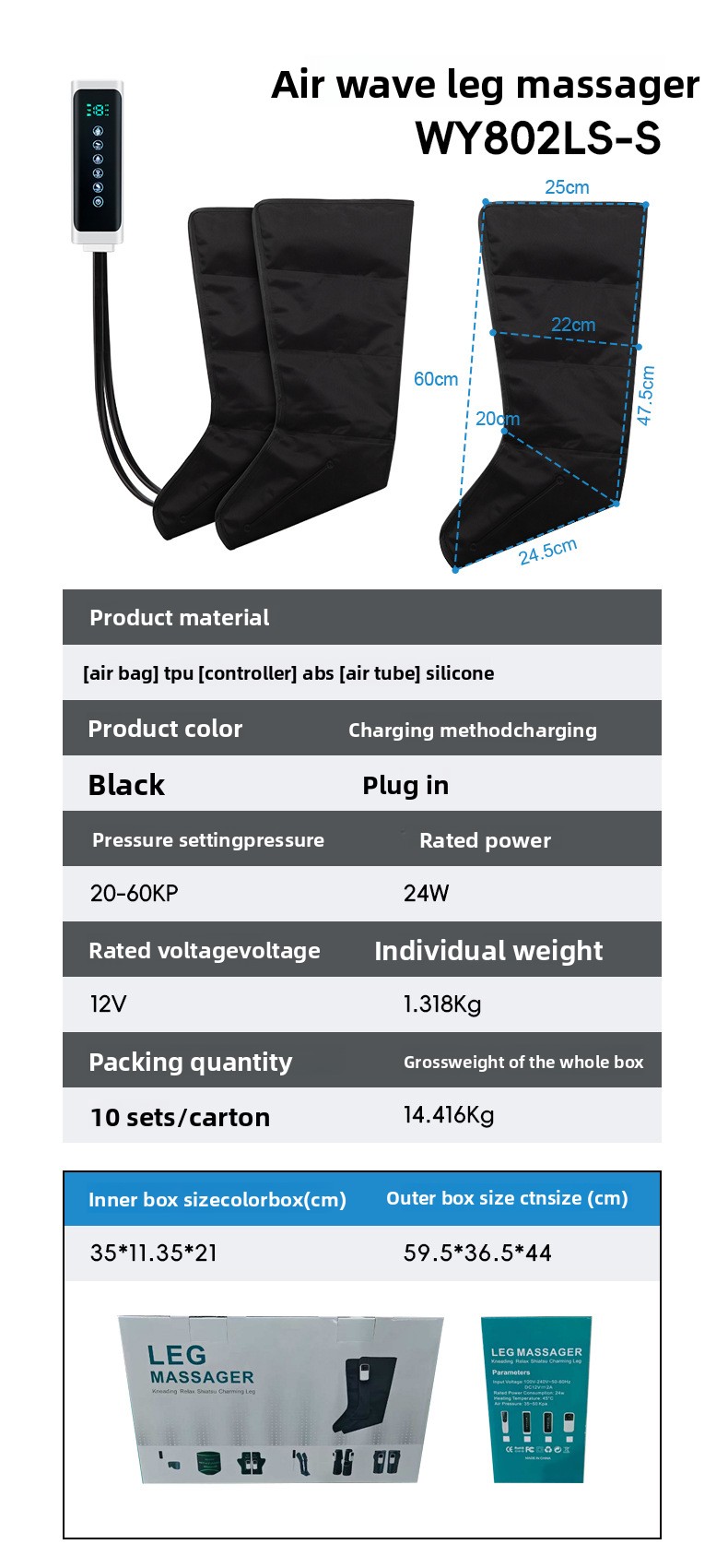 - 4-Chamber Airbag Design: Provides comprehensive leg and foot massage with targeted pressure points.