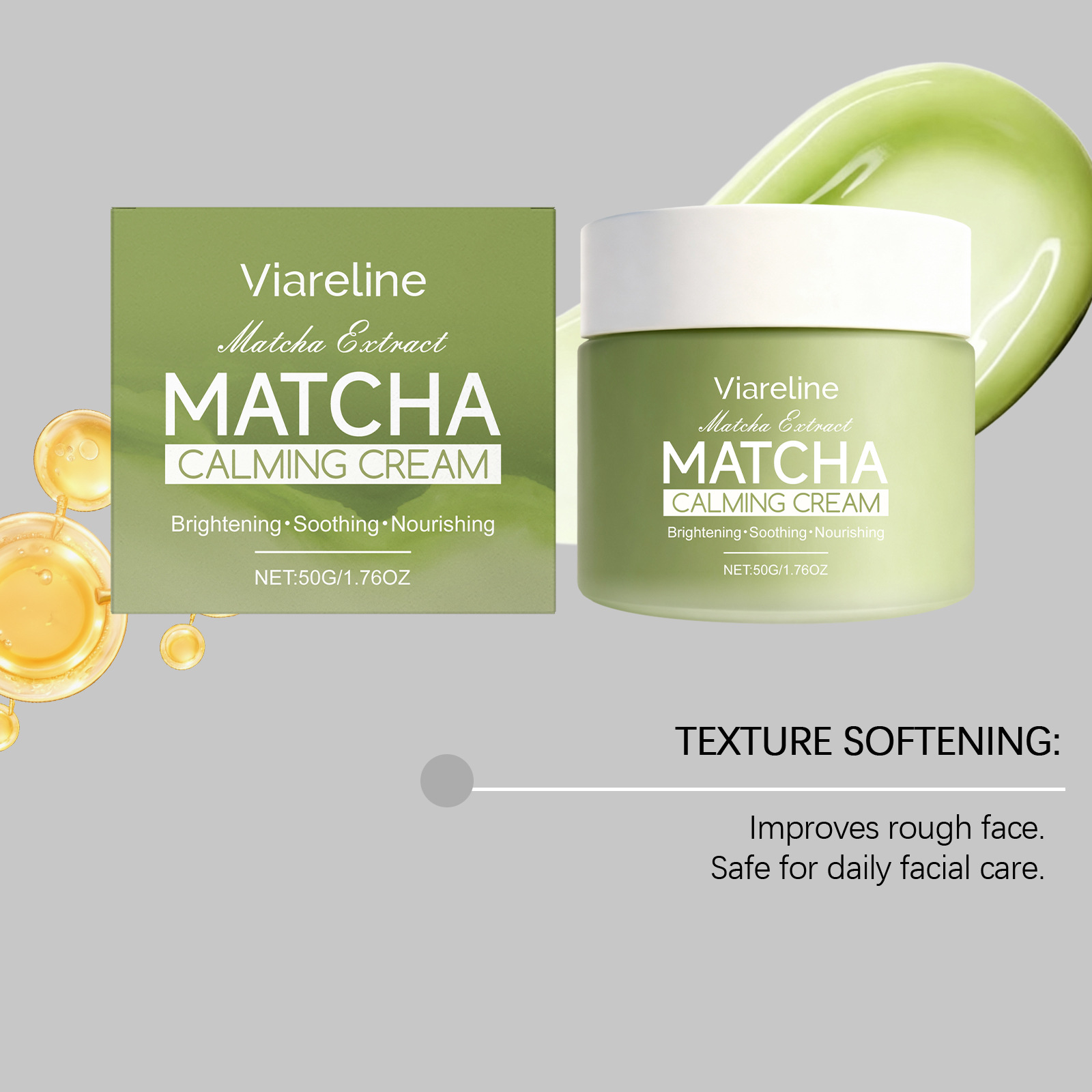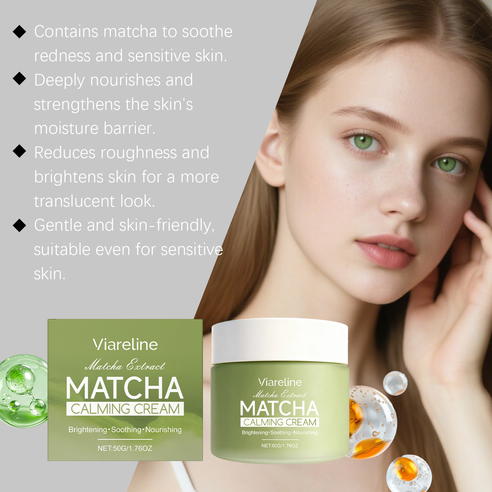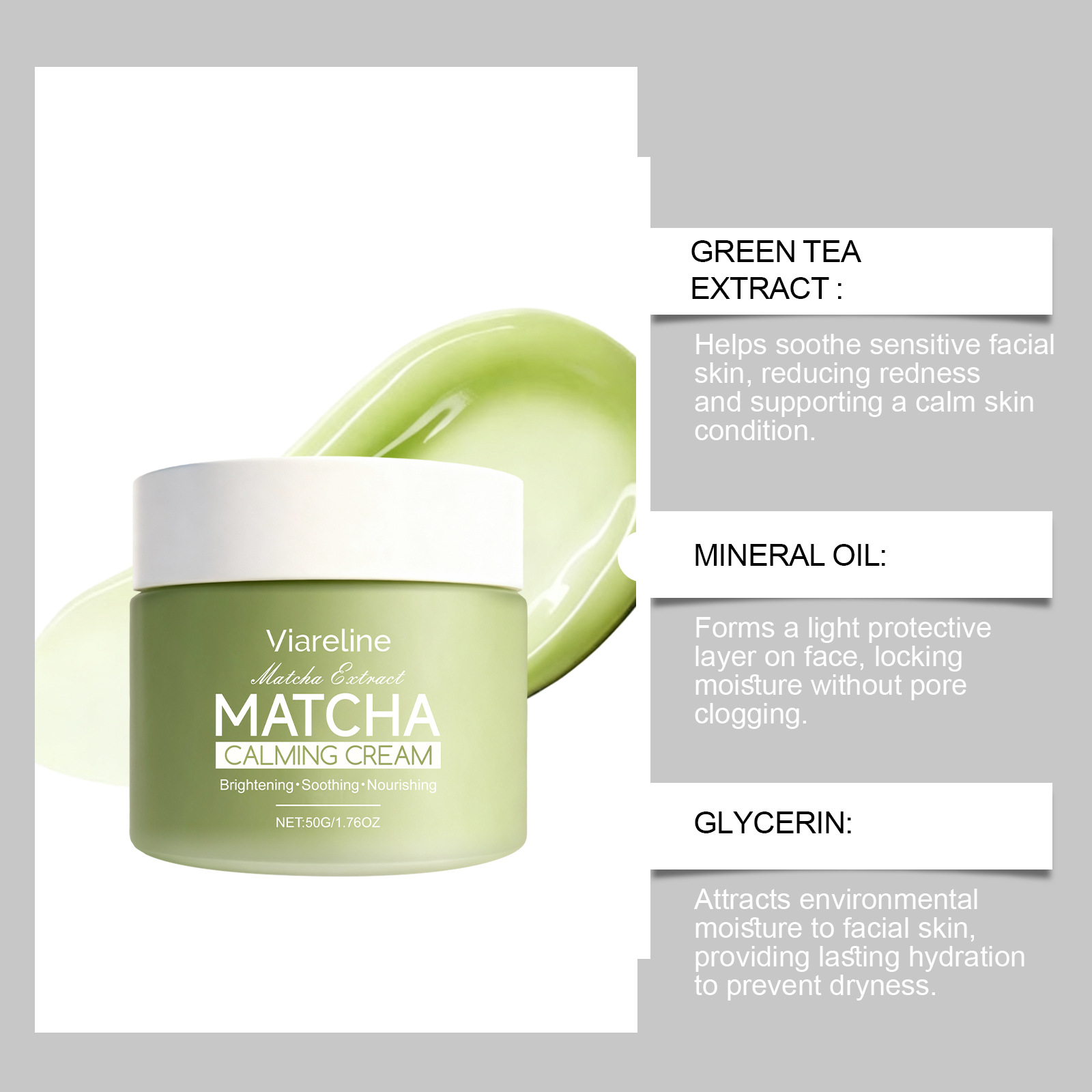 Matcha extract face cream: Nourishes dry skin, smooth texture, lightweight and easily absorbed, perfect for daily skincare.